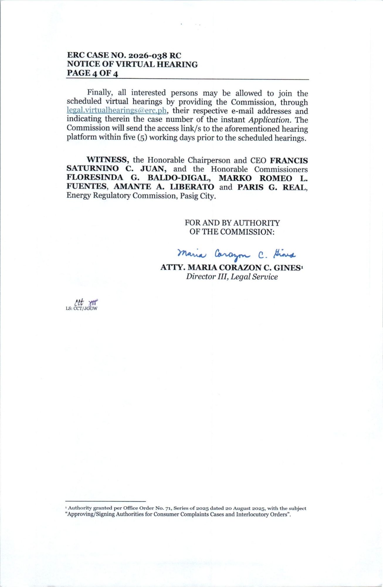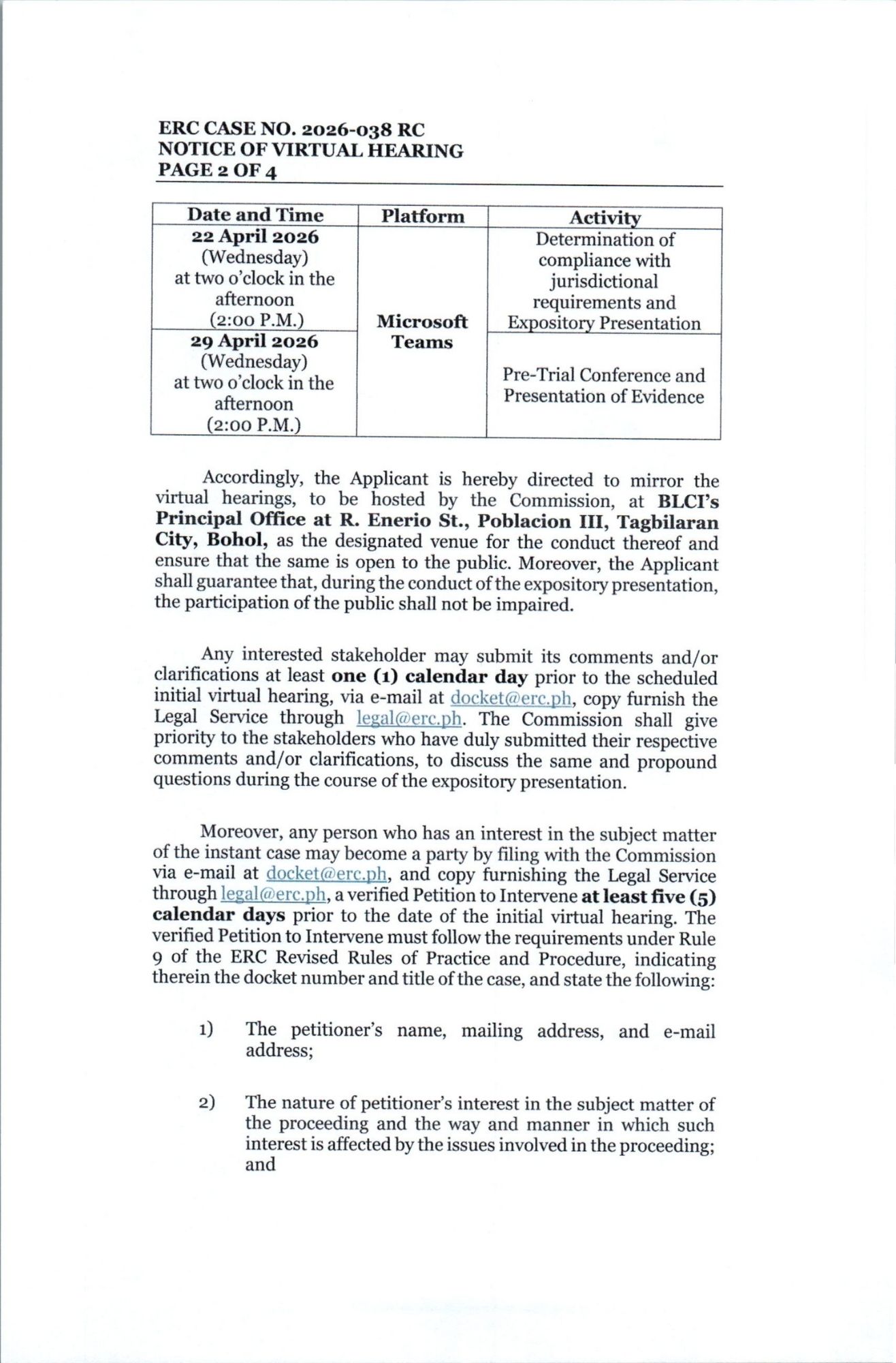 Notice of Virtual Hearing ERC Case No. 2026-038_RC